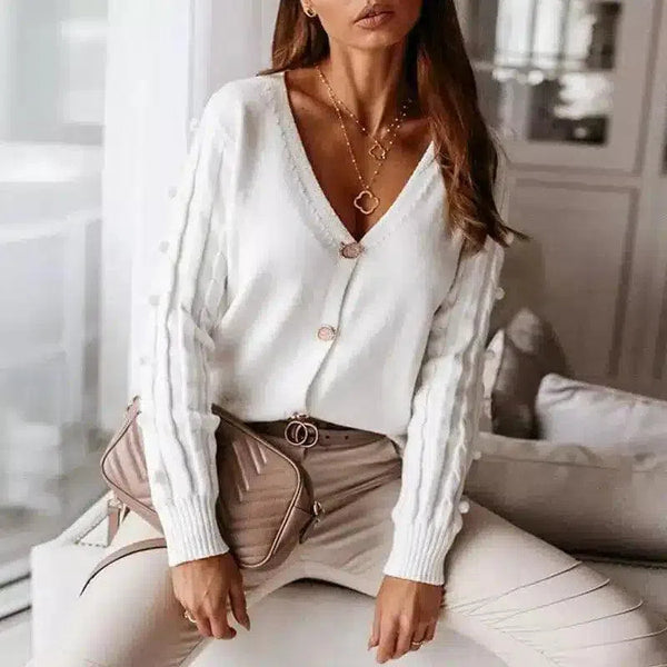 Sweater Rajut Leher V Wanita dengan Detail Kancing