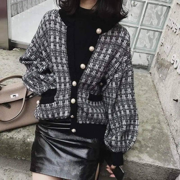 T3282 Atasan Kardigan Lengan Lentera Rajut