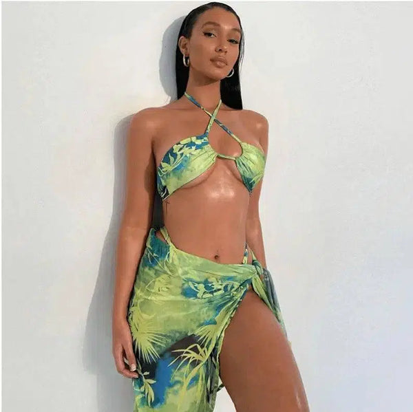Rok Mini Rompi Rompi Leher Leher Cetak Bungkus Dada Tiga Bagian