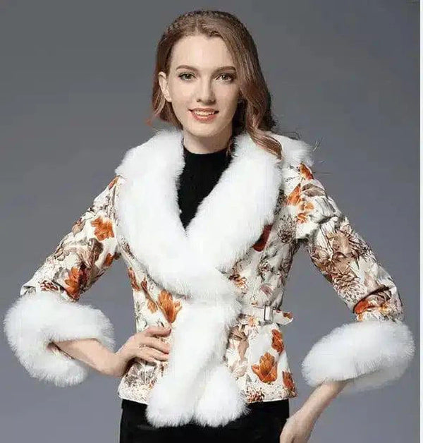 Jaket Floral Kerah Bulu Palsu untuk Wanita