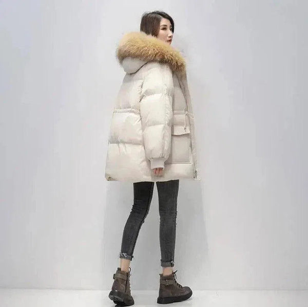 Jaket Puffer Musim Dingin dengan Tudung Bulu Palsu