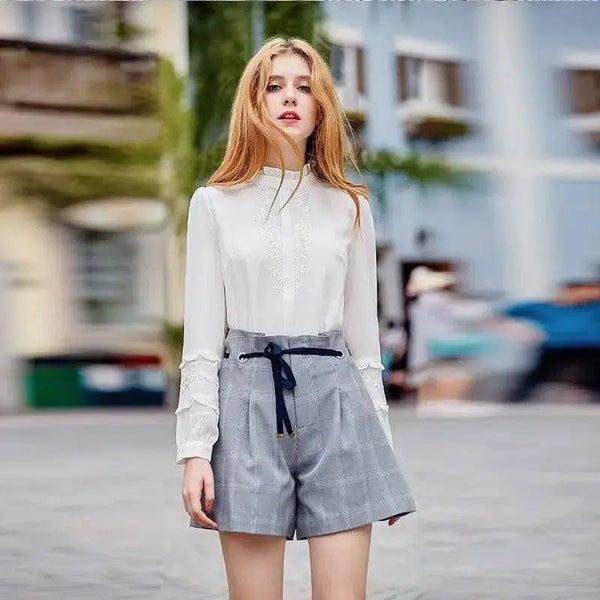 Celana Pendek Paha Lebar Kotak-kotak Wanita