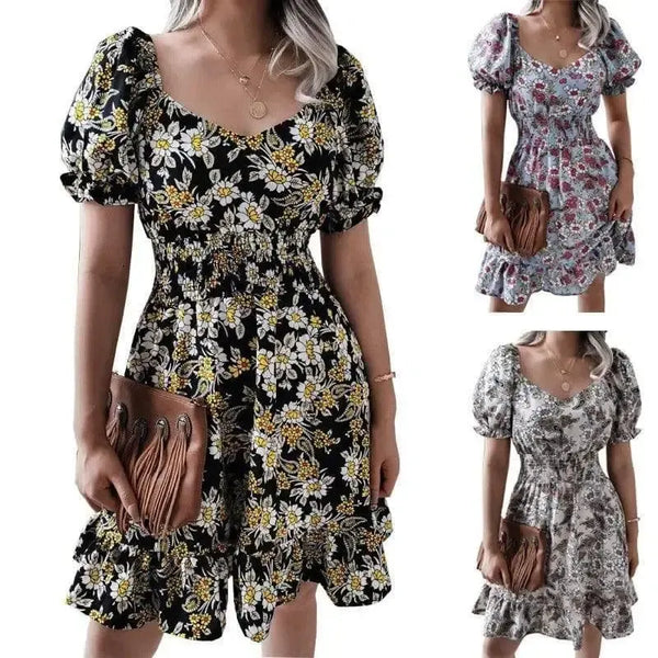 Gaun Ruffle Kasual Lengan Pendek Wanita