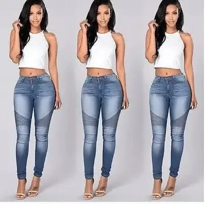 Celana pensil jeans wanita dengan lipatan ramping lipatan jahitan kaki