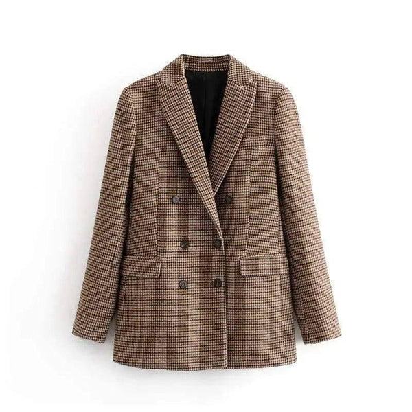Kotak-kotak Santai Musim Gugur dan Musim Dingin Wanita Kotak-kotak Berdada Ganda