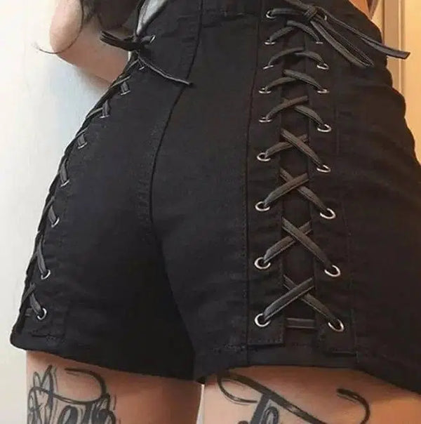 Deskripsi Produk: Wanita Celana Pendek Padat Perban Salib Perban Pinggang Tinggi REGULER