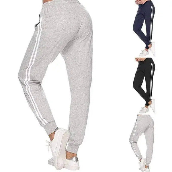 Deskripsi Produk: Legging Olahraga Dua Batang Bertrim Putih Wanita