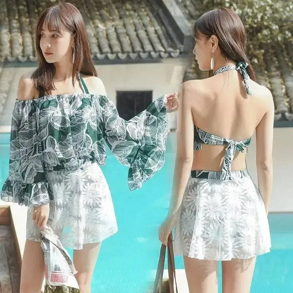 - Komponen: Termasuk atasan bikini yang mendukung, bawahan bertingkat, dan penutup dada yang bergaya.