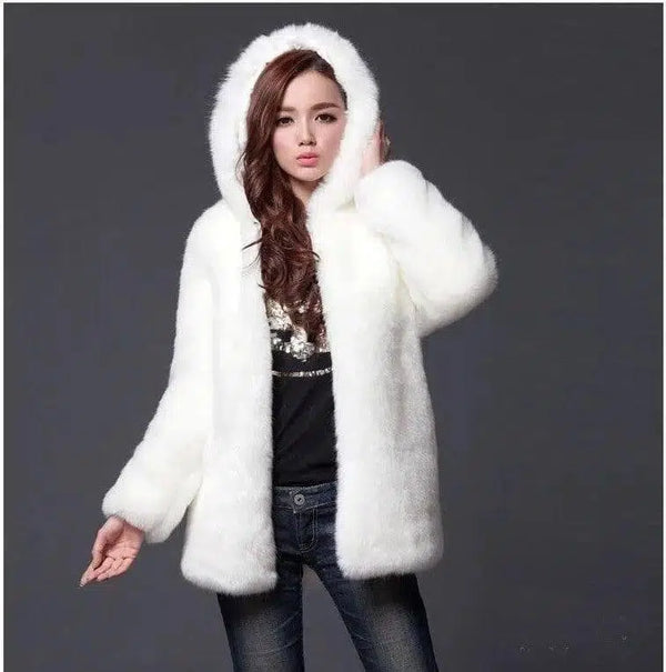Mantel berkerudung wanita bulu imitasi mantel panjang tengah