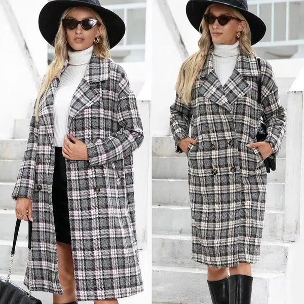 Mantel Kasmir Panjang Berdada Ganda Dengan Kerah Setelan Jas