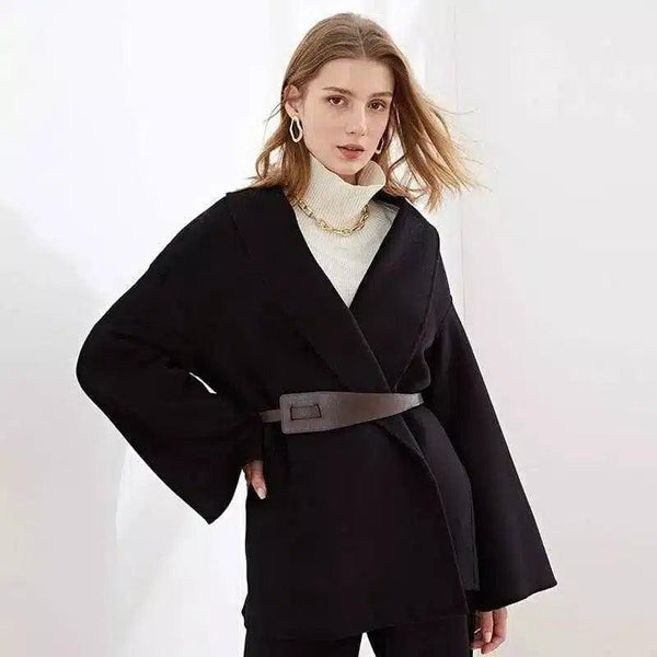 Mantel kasmir dua sisi dengan ikat pinggang wol