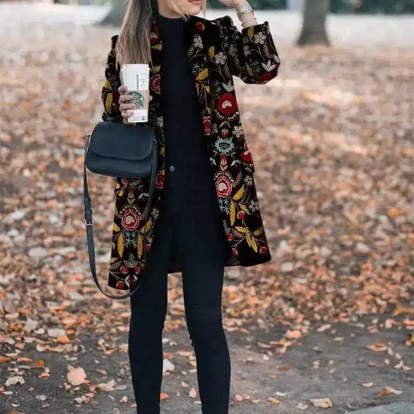 - Jenis pakaian: Mantel bermotif bunga