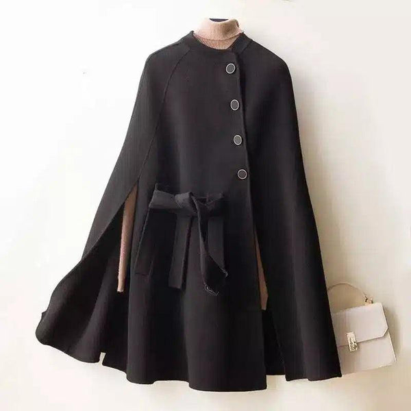 Mantel Cape Musim Dingin dengan Dasi Kupu-Kupu dan Penutup Kancing