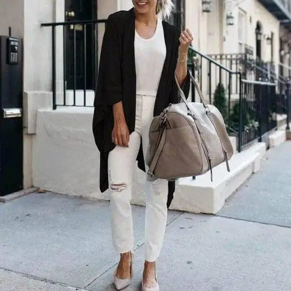 Mantel panjang longgar tak beraturan dari kardigan rajut