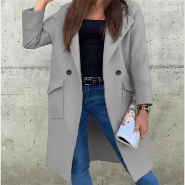 Kerah Jas Lengan Panjang Warna Solid Musim Gugur Dan Musim Dingin