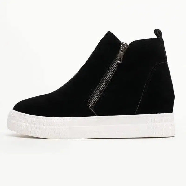 Sepatu Tunggal Ritsleting Samping Tumit Wedge Musiman Wanita