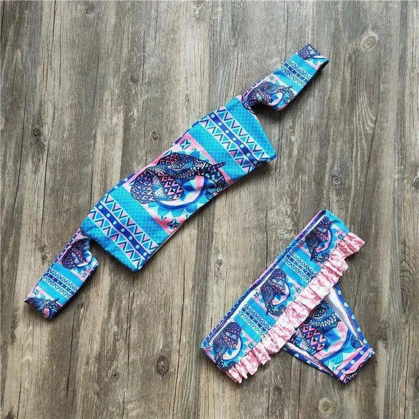 Leher Tank Crop Top Bikini Rajutan Bikini Bikini Set Pakaian Renang Wanita