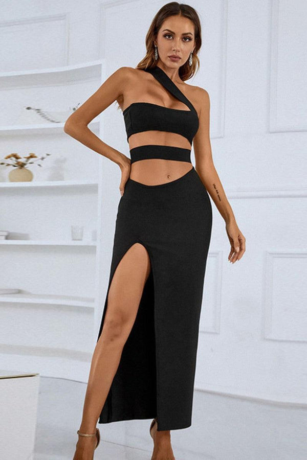 One-Shoulder Cutout Front Split Maxi Dress