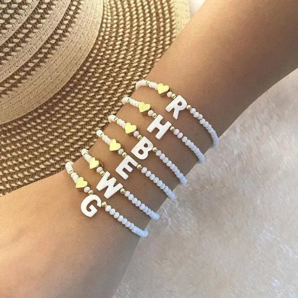 26 Huruf Gelang Manik-manik Kerang Putih Gelang Wanita Logam Desain Gelang Cinta Perhiasan