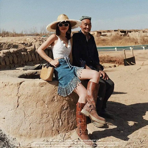 Rok Denim Rumbai Rumbai Retro Tidak Beraturan Wanita