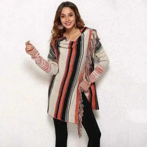 Kardigan Berkerudung Wanita Bergaris dengan Pinggiran