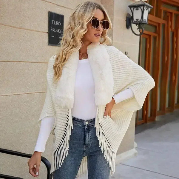 Deskripsi Produk: Selendang Rumbai Kerah Bulu Wanita Rajutan