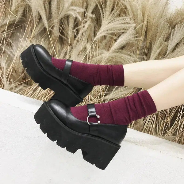 Deskripsi Produk: Sepatu Platform Retro Gesper Bulat