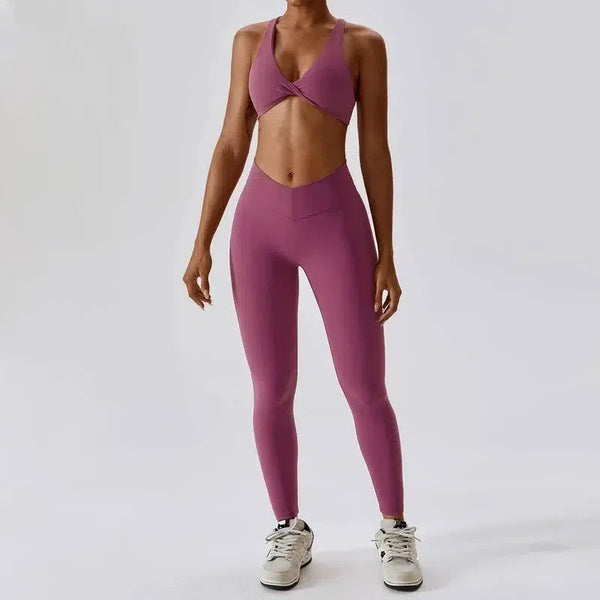 Set Pakaian Yoga Wanita Pakaian Atletik Legging Pinggang Tinggi