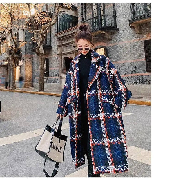 Kerah Setelan Jas Kotak-kotak Kontras Kerah Lurus Longgar