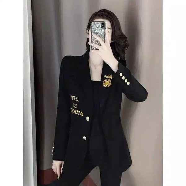 Blazer Khusus Wanita dengan Aksen Kancing Emas