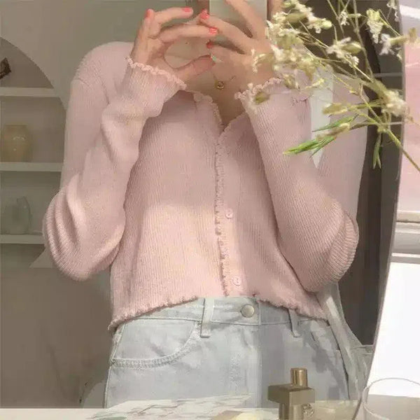 - Delicate Pastel Pink: Cardigan ini menampilkan warna pink pastel yang cantik, menambahkan sentuhan feminin dan kehangatan pada lemari pakaian Anda.
