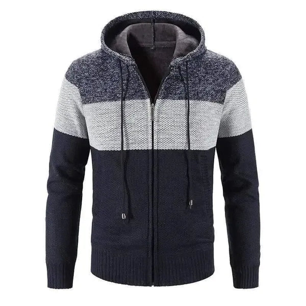 Sweater Pria Sweater Wol Ritsleting Tebal Sweater Berkerudung Mantel Garis-garis
