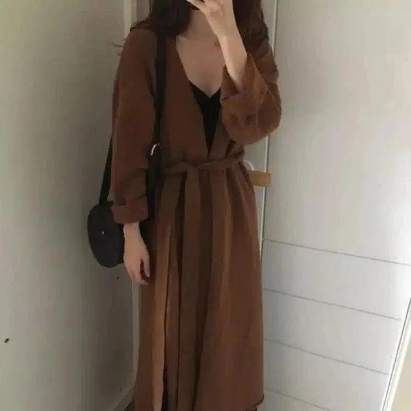 Gaun Maxi Lengan Panjang Wanita dengan Ikat Pinggang