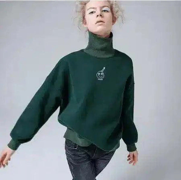 - Gaya Garis Leher: Kerah turtleneck kerah tinggi