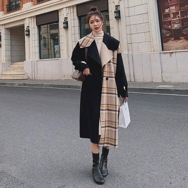 Kontras Mantel Wol Serba Hitam Komuter Temperamen