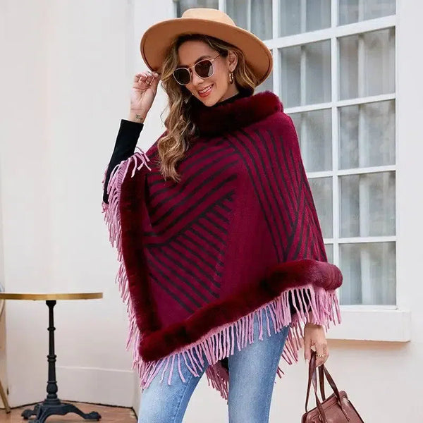 Jubah Rajutan Rumbai Rumbai Kerah Bulu Gerimis Untuk Wanita