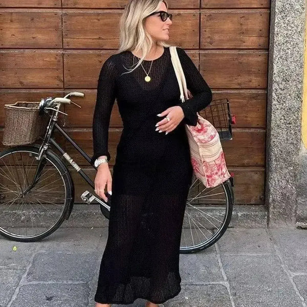 Temperamen Busana Wanita Gaun Rok Midi Warna Murni Rok Midi