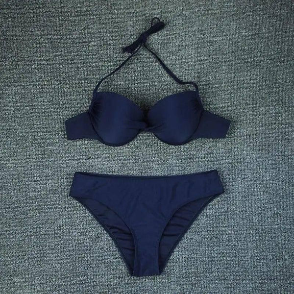 Tas Keras Warna Solid Tas Backless Bikini Baju Renang Wanita